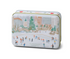 The Holiday 5 oz. 2-wick Candle Tin - Mistletoe & Mint features beautifully illustrated holiday scenes, filling your home with winter nostalgia and cozy fresh fragrances. Add a ribbon to give as a gift or add to a stocking!
