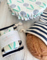We love this new fabric with a corresponding bread bag in navy stripes!! Perfect for the bread maker in your life (this may be you!). A linen blend xl bowl cover (skip the plastic) for your rising dough and a bread bag for after you bake your bread. The bowl cover fits a bowl up to 16inches. Bread bag is 12 x 16" and closes with a drawstring. 100% cotton canvas Machine washable in cool, air dry. Made in Georgia.