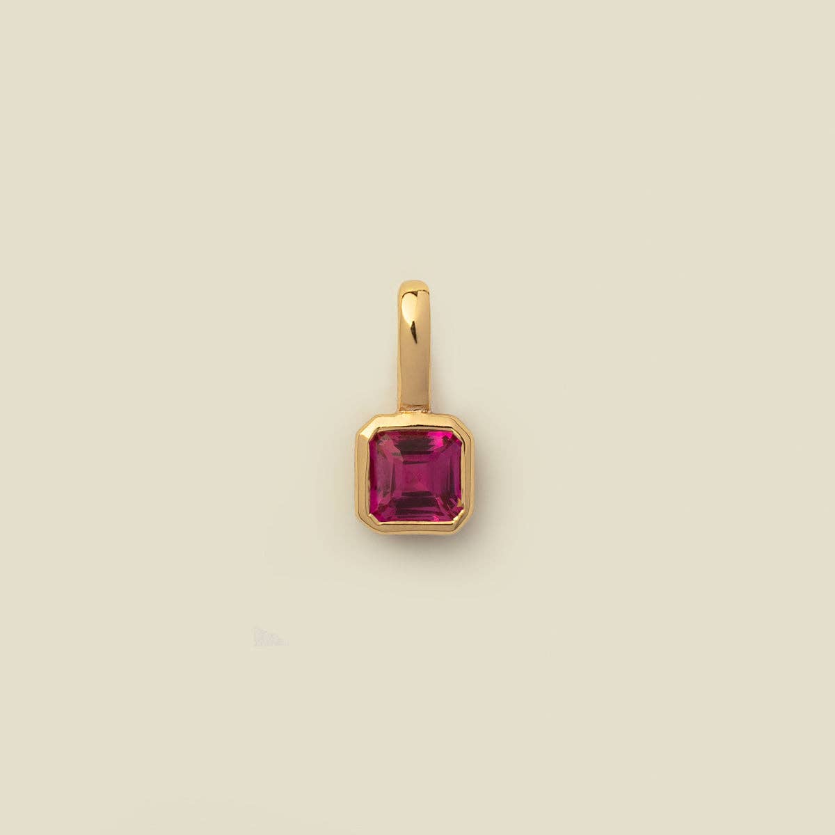 Asscher cut ruby CZ, framed in gold vermeil. Link lock necklace and bracelet sold separately. Retailers who purchase charms must also purchase a MBM chain. Retailer may choose the style of chain: Jude or Rolo Link Lock, 16"-18" or 20"-22" pendant chain.